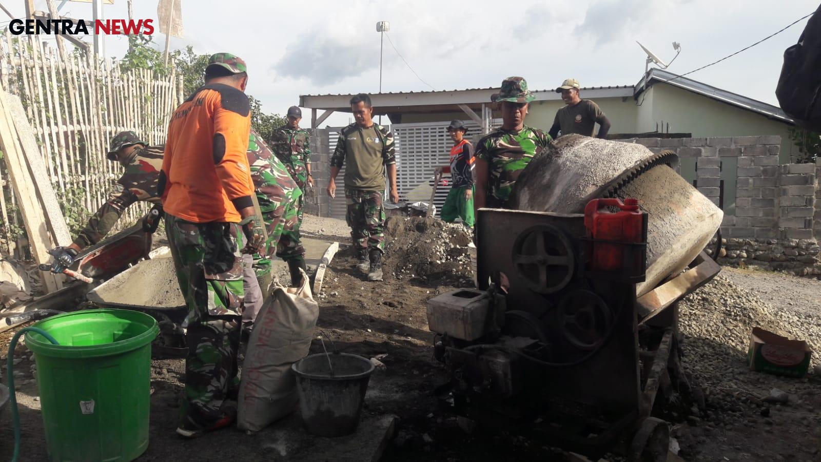 Prajurit Kodim 1614/Dompu bersama masyarakat setempat bergotong – royong melaksanakan kegiatan karya bakti Pembangunan akses jalan ke Ponpes Imam ahmad bin hambal dan pembuatan saluran irigasi.