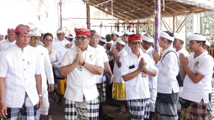Tabanan PR – Bupati Tabanan, Dr. I Komang Gede Sanjaya, S.E., M.M., menghadiri uleman Upacara Pujawali Pasemetonan Agung Pratisentana Sri Nararya Kenceng yang dilaksanakan