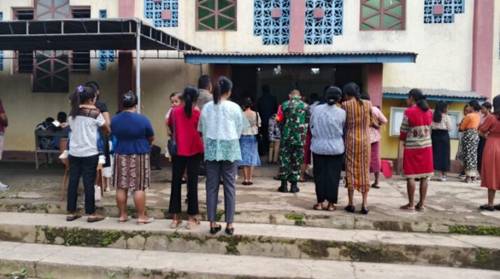Flotim – Babinsa Koramil 1624 – 06/Wulanggitang Kopda I Komang Sudiana melaksanakan pengamanan di Gereja Santa Maria tak beronda yang ada di Desa Boru, Kecamatan Wulanggitang, Kabupaten Flotim. Minggu (15/06/2025).