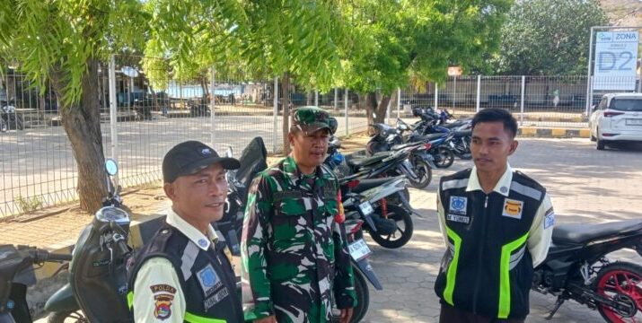 Sumbawa Barat – NTB, Babinsa Desa Senayan, Sertu Chaeruddin, anggota Koramil 1628-04/Poto Tano, melaksanakan pengamanan (PAM) di Pelabuhan Penyeberangan Poto Tano pada Selasa pagi (18/11/2025) pukul 08.20 Wita.