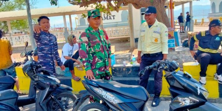 Sumbawa Barat – NTB, Babinsa Desa Kokarlian, Koramil 1628-04/Poto Tano Serda Beni Eka S, melaksanakan tugas pengamanan rutin di Pelabuhan Penyeberangan Poto Tano pada Sabtu (6/12/2025) sekitar pukul 09.53 WITA. Kegiatan pengamanan ini dilakukan sebagai bagian dari upaya menjaga keamanan, ketertiban, serta kelancaran aktivitas masyarakat dan arus transportasi laut di pintu utama masuk dan keluar wilayah Kabupaten Sumbawa Barat.