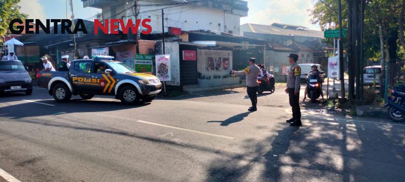 Pengaturan Lalulintas di Laksanakan Personil Polsek Tabanan saat Rombongan Melasti Melintas