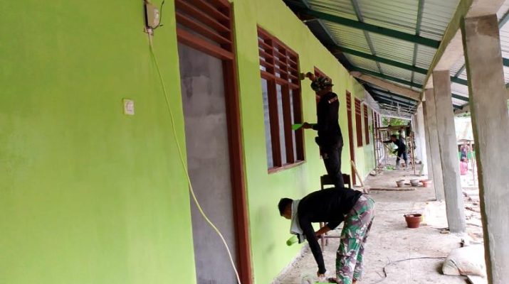 Di bawah sinar matahari yang terik, para personel Satgas TMMD yang terdiri dari TNI, Polri, serta masyarakat Desa Lanaus, bahu-membahu mengoleskan lapisan cat pada seluruh bagian luar gedung sekolah. Warna cat yang cerah tak hanya mempercantik bangunan, tetapi juga menjadi simbol harapan baru bagi anak-anak desa yang akan menempati sekolah tersebut.