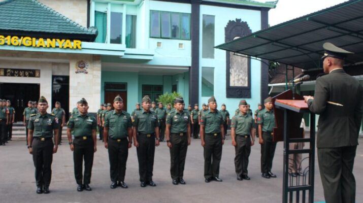 Bertindak selaku pimpinan upacara, Dandim 1616/Gianyar Letkol Kav Rizal Wijaya, S.H., M.I.P. memimpin langsung jalannya kegiatan yang berlangsung penuh kekeluargaan dan semangat kebersamaan. Upacara tersebut menjadi momentum penting bagi keluarga besar Kodim 1616/Gianyar untuk memberikan penghormatan kepada prajurit yang memasuki masa purna tugas sekaligus memberikan apresiasi kepada anggota yang menerima kenaikan pangkat satu tingkat lebih tinggi.