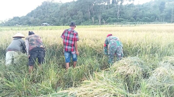 Wujud dukungan TNI khususnya prajurit kewilayahan yaitu Babinsa dalam mendukung ketahanan pangan, dengan Semangat ikut serta terjun langsung ke sawah bantu para petani desa binaannya saat memanen padi, inilah yang dilakukan oleh Babinsa kepada para petani warga desa binaannya.