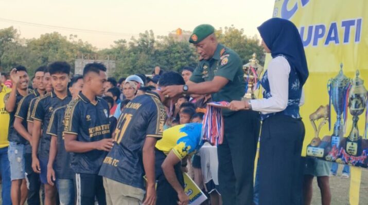 NTT –Sumba Timur. Dalam rangka mendukung kegiatan olahraga dan mempererat sinergi antara TNI dengan masyarakat, Perwira Seksi Operasi Kodim 1601/Sumba Timur, Lettu Inf Rafael Tende, menghadiri acara penutupan Turnamen Sepak Bola Bupati Cup 1 antar kecamatan se-Kabupaten Sumba Timur Tahun 2025 berlangsung di lapangan Matawai,Kecamatan Kota Waingapu, Kabupaten Sumba Timur.Kamis (14/08/2025)