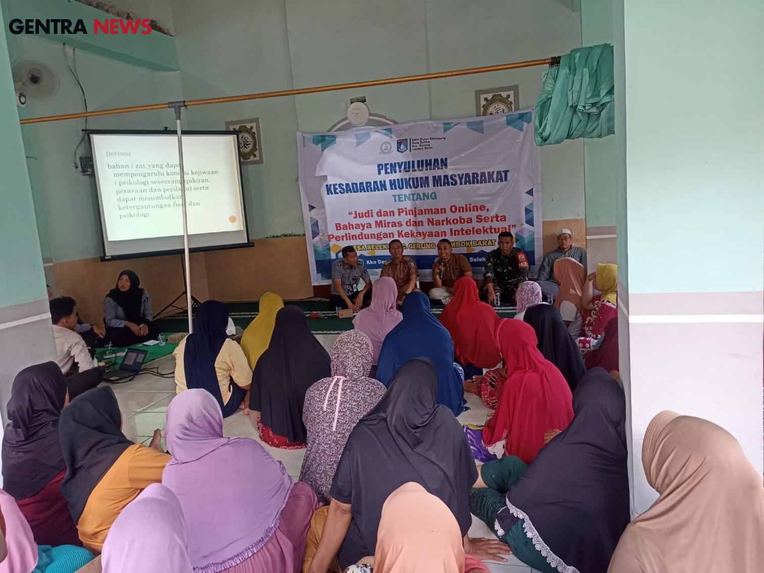 Penyuluhan ini membahas topik-topik penting seperti judi dan pinjaman online, bahaya miras dan narkoba, serta perlindungan kekayaan intelektual. Kegiatan tersebut dihadiri oleh berbagai tokoh penting, di antaranya Kepala Desa (Kades) Beleka Islahudin, S.IP., Irwan Kusdiharto, S.H., M.H., Linda Maya Sastra, dan Pak Dewa, selaku penyuluh hukum, Kanit Polsek Gerung Ari Saputra, serta perwakilan masyarakat Desa Beleka.