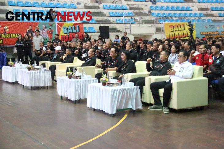 Salam Bali Juara! menggema di GOR Lila Bhuana, Tampak ratusan patriot olahraga berkumpul di GOR ini untuk mengikuti pembukaan Pemusatan Latihan Daerah (Pelatda) dalam menghadapi PON XXI/2024 di Aceh – Sumatera Utara (Sumut).