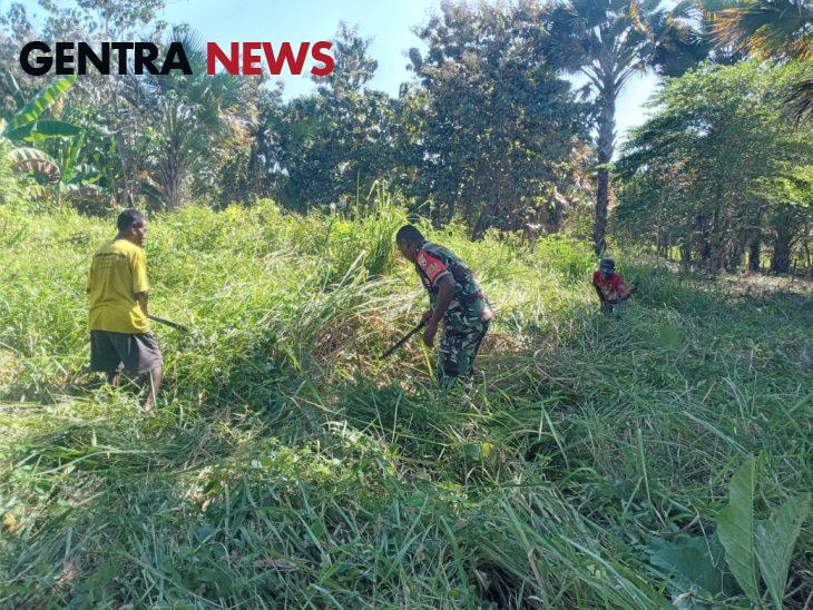 Gentra News NTT – KODIM 1605/BELU, Babinsa Desa Weoe Koramil 1605-09/Biudukfoho Serda Henry Rumamelete membantu warga binaannya membuka lahan untuk dijadikan perkebunan dalam upaya membangun perekonomian masyarakat di wilayah Desa binaan.