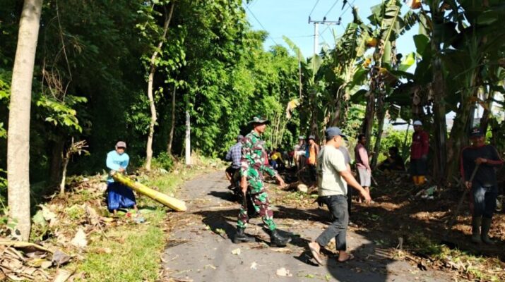 Lombok Timur – Babinsa Desa Bebidas Koramil 1615-11/Aikmel Sertu Yudha Saptahadi melaksanakan kegiatan gotong royong pelebaran jalan bersama Danpos Wanasaba. (Jumat 12/12/2025).