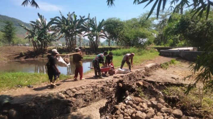 Perkuat Ketahanan Pangan, Babinsa Bantu Benahi Saluran Air Kelompok Tani