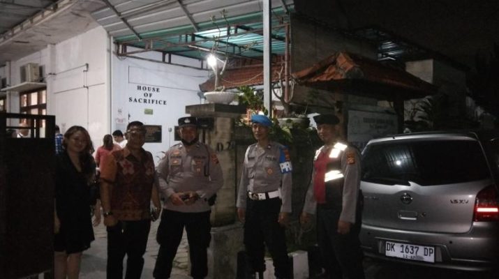 Gentra.co.id Bali – SUKAWATI, Personel Polsek Sukawati amankan kegiatan Perayaan Ibadah dan Persembahyangan menjelang Hari Raya Natal Tahun 2024 di Gereja “House Of Sacrifice”