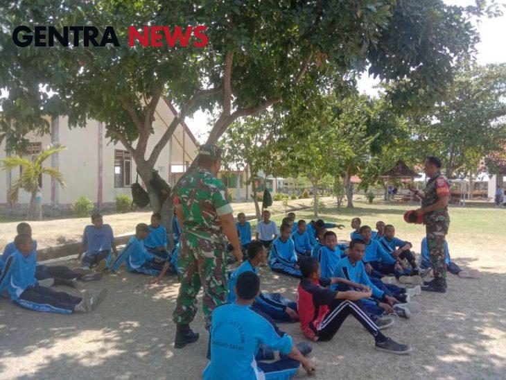 Sumbawa Barat – Babinsa Koramil 1628-03/Seteluk Serda M Nasir melatih peraturan baris berbaris (PBB) siswa-siswa