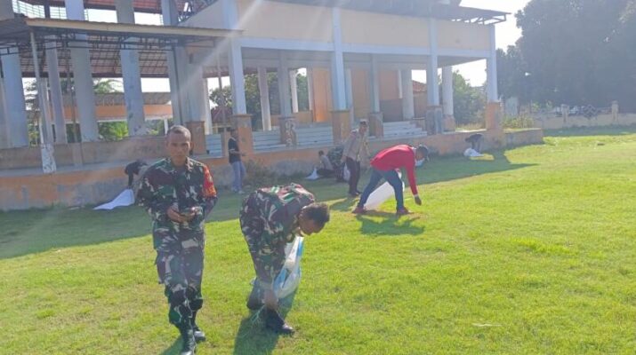 Gentra.co.id NTB – Bima, 28 Maret 2025 – Dalam rangka persiapan tempat untuk pelaksanaan Sholat Idul Fitri 1446 H/2025, anggota Koramil 1608-02/Bolo dan Polsek Bolo bersama Pemerintah Kecamatan Bolo melaksanakan kerja bakti di Lapangan Paruga Na’e, Desa Kananga, Kecamatan Bolo, Kabupaten Bima. Kegiatan yang berlangsung pada pukul 08.20 WITA ini dipimpin langsung oleh Kapolsek Bolo, AKP Nurdin, dan diikuti oleh berbagai unsur, termasuk aparat pemerintah serta masyarakat sekitar. Aksi gotong royong ini bertujuan untuk memastikan kebersihan dan kenyamanan lokasi yang akan digunakan dalam perayaan hari besar umat Islam tersebut.