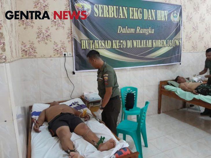 Gentra News NTT – Kupang – Dalam rangka menyambut HUT Kesehatan Angkatan Darat ke-79 tahun 2024, personel Kodim 1604/Kupang mengikuti kegiatan serbuan EKG dan HRV. Kegiatan ini berupa pemeriksaan jantung (EKG) yang dilaksanakan di Aula Denkesyah 09.04.01 Kupang, Kamis (12/09/2024).