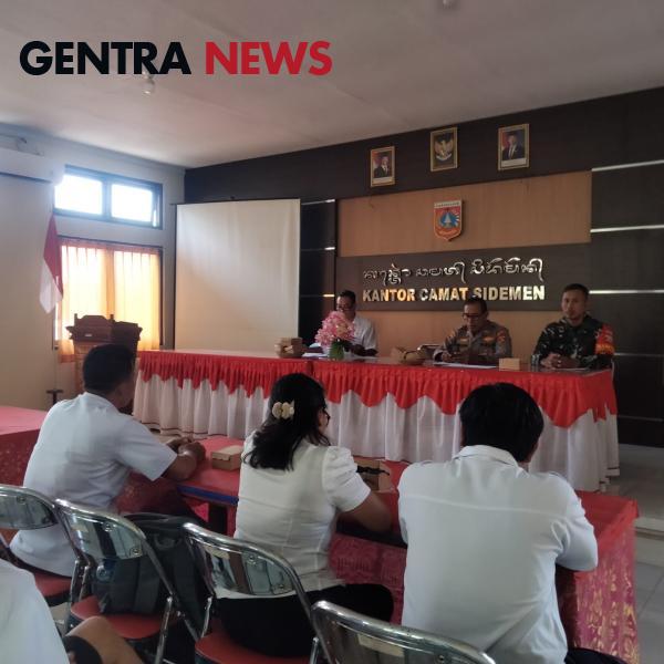 Kegiatan sosialisasi dibuka oleh Sekcam Sidemen dilanjutkan paparan terkait dengan tugas pokok Forum Kewaspadaan Dini dimana sinergitas Forkopimcam menjadi hal yang sangat penting untuk menangkal Gangguan, Hambatan, Ancaman dan Tantangan di wilayah Kec. Sidemen. Kegiatan dilanjutkan dengan mendengarkan saran dan masukan dari peserta sosialisasi.