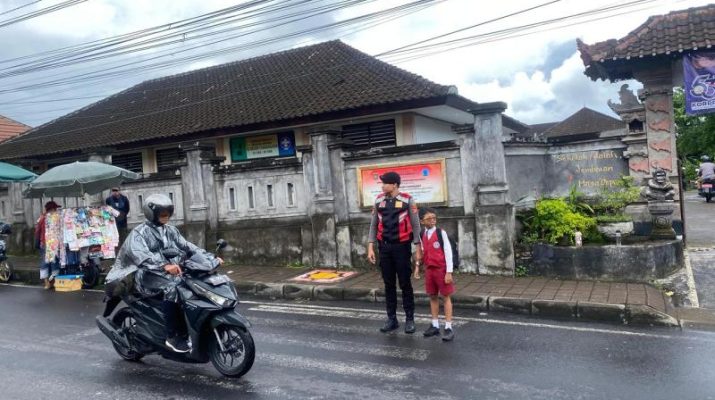 Gentra.co.id Bali  – Karangasem – Personel Satsamapta Polres Karangasem melaksanakan kegiatan pengaturan dan penjagaan siang di SDN 5 Karangasem, Senin (13/01/2025). Kegiatan ini dilakukan untuk memastikan keamanan dan kenyamanan para siswa, guru, dan masyarakat di sekitar lingkungan sekolah.