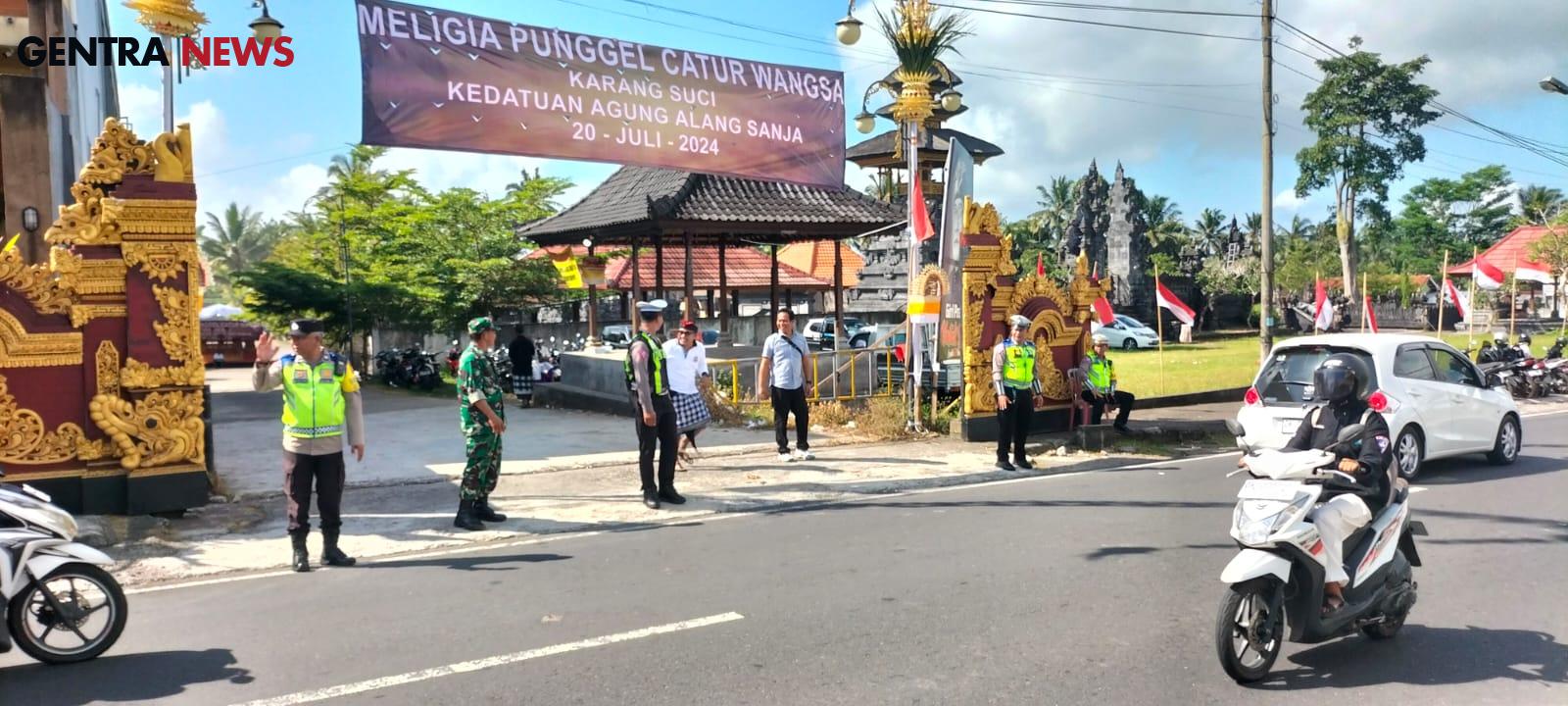 Bangli, Demi Keamanan dan kelancaran kegiatan masyarakat, Polres Bangli senantiasa siap untuk mengamankan setiap kegiatan yang ada di masyarakat, terutama hari ini serangkaian kegiatan Upacara Pitra Yadnya Mendak Lingga Maligia Punggel Catur Wangsa yang puncak acara hari Sabtu 20 Juli 2024 di Karang Suci Agung Alang Sanja Kelurahan Bebalang Kecamatan dan Kabupaten Bangli, Jumat 19/7/2024