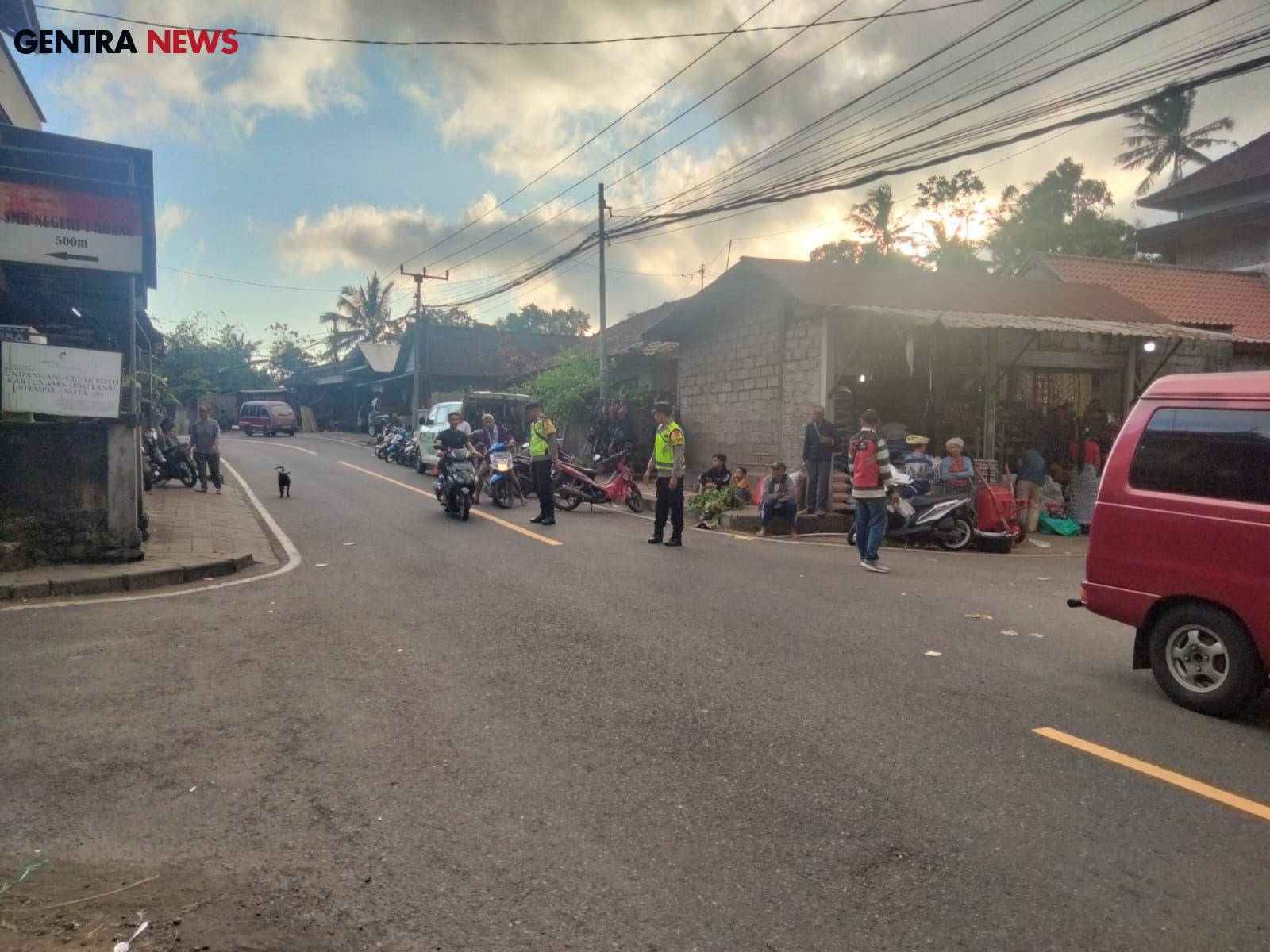 Kegiatan Pengaturan lalu lintas ini dilakukan Personil Polsek Abang guna menciptakan Keselamatan bagi pengendara maupun para pejalan kaki yang melaksanakan kegiatan di Jalan Raya Pasar Mangsul, Desa Tista,Kecamatan Abang