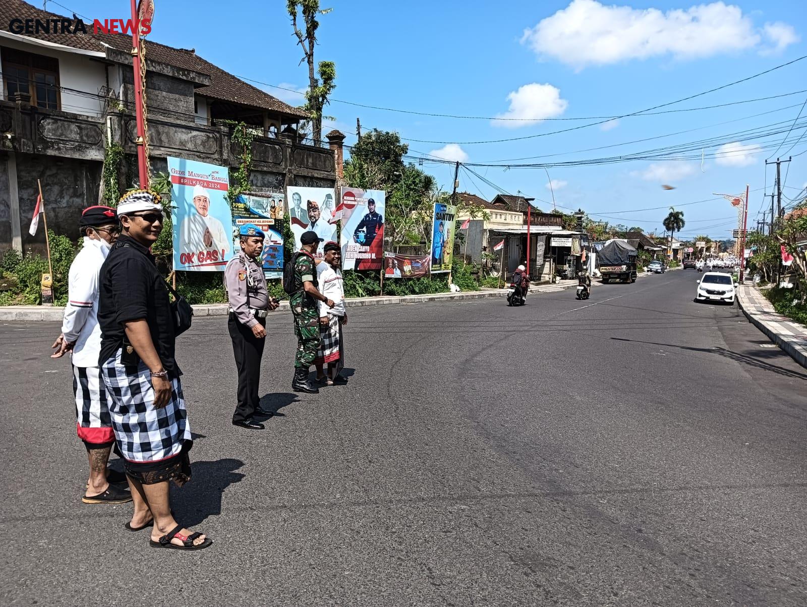 Dalam kesempatan Pawas bersama anggota didampingi Bhabinkamtibmas berkalaborasi dengan pecalang desa adat setempat melaksanakan pengamanan dan pengaturan di simpang tiga gunaksa, simpang tiga patung Dwijati dan depan Pura Kehen, sehingga kegiatan masyarakat tersebut dapat berjalan dengan aman, lancar dan kondusif,” ujarnya.