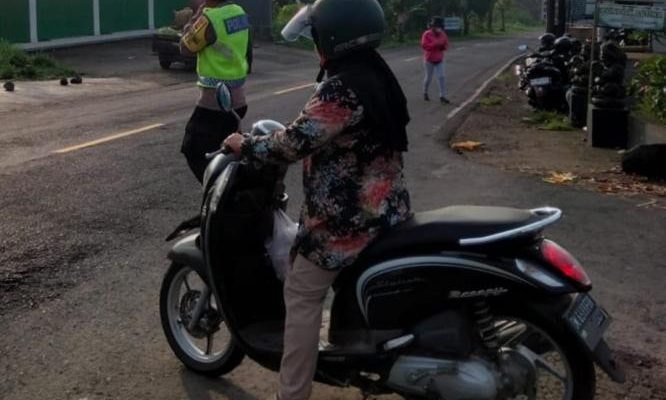 Personil Polsek Baturiti laksanakan strong point pagi di lokasi rawan macet dan laka