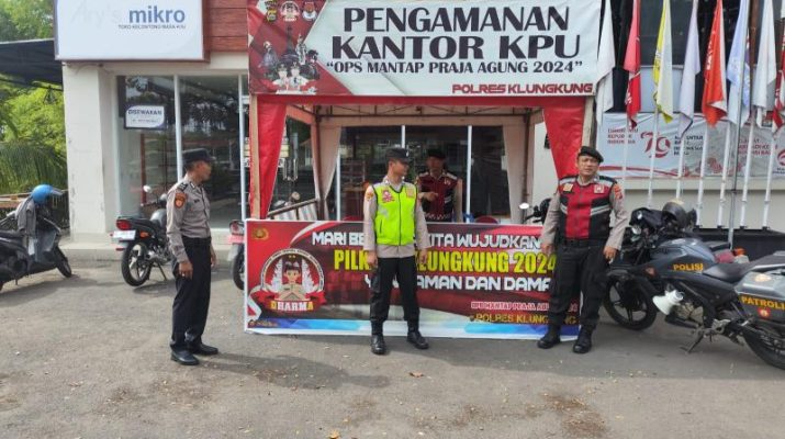 Gentra News Bali – Dalam Pilkada Serentak 2024 sudah dilakukan tahap hitung dan rekap dan untuk Kabupaten Klungkung sebagai hasil pleno Kabupaten Klungkung sudah dikirim ke kantor KPU Propinsi Bali, namun dalam Operasi Mantap Praja tahun 2024 masih berlangsung sehingga personel Polres Klungkung yang terlibat dalam operasi melaksanakan pengamanan di Kantor KPU Kabupaten Klungkung yang berlokasi di jalan Bypass Ida Bagus Mantra, Negari, Banjarangkan, Klungkung (8/12/2024).