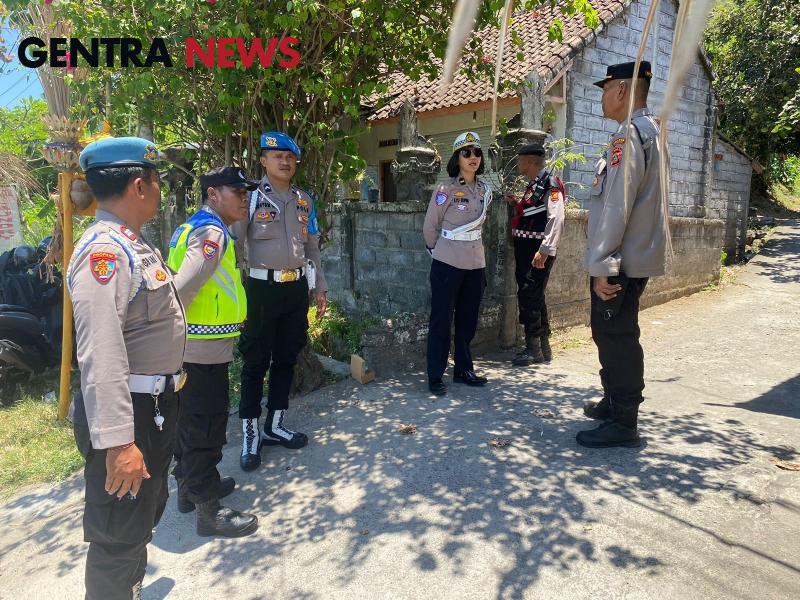 Personel Polres Klungkung yang terlibat dalam Operasi Mantap Praja Agung 2024 melaksanakan pengamanan kegiatan simakrama paket Astaguna ( I Made I Made Kasta – I Ketut Gunaksa ) di Balai Subak Dawan, Desa Dawan Klod, Dawan, Klungkung (10/10/2024).