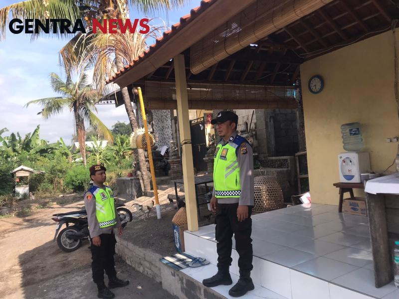 Personel yang tergabung dalam Subsatgas Preventif, Sub Sub Subsatgas Pam Kediaman Paslon melaksanakan pengamanav di kediaman calon Bupati Klungkung I Ketut Juliarta yang berlokasi di Gunaksa, Dawan, Klungkung.