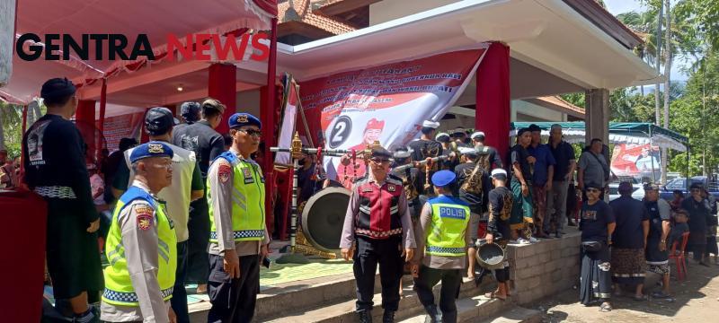 Gentra News Bali – Personel Polda Bali yang terlibat dalam Operasi Mantap Praja Agung melaksanakan pengamanan kegiatan kampanye paslon Gubernur dan Wakil Gubernur Bali nomor urut dua, I Wayan Koster – I Nyoman Giri Prasta di Banjar Tirta Sari, Desa Tianyar Barat, Kubu, Karangasem, Senin (30/9/2024).