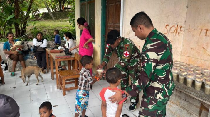 Malaka – Pos Auren bagiakan bubur kacang hijau serta dukung pelayanan kesehatan di Posyandu Dusun Lalebun, Desa Alas Selatan, Kecamatan Kobalima Timur, Kabupaten Malaka.