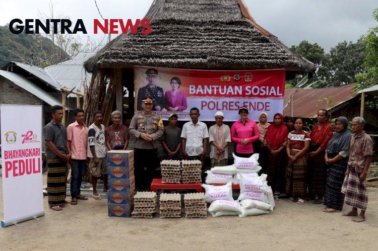 Warga Kampung Kolibari, Menerima Bantuan Sembako dari Kapolres Ende