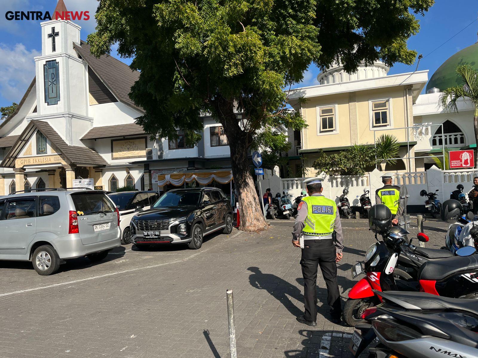 Sebanyak 6 personil dipimpin langsung oleh Perwira Pengawas (Pawas) tampak berjaga-jaga di sekitar areal gereja selain itu pengamanan juga dilaksanakan oleh petugas pengamanan internal gereja.