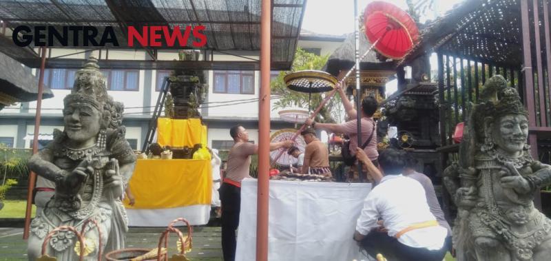 Kegiatan gotong royong /Ngayah dipimpin Ketua Umat Hindu Polres Bangli Kompol Made Adi Suryawan, Sh , MM bersama personil Polres Bangli yang beragama Hindu,