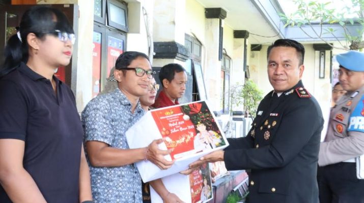 “Hari ini kami menyerahkan bingkisan Natal kepada personel Polres Gianyar yang beragama Kristen dan kepada phl yang berada di Polres Gianyar,” Kata Waka Polres Gianyar.
