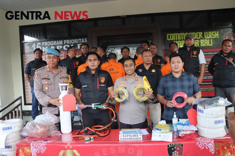 “Para tersangka melakukan aksinya dengan cara membobol pintu toko menggunakan las. Mereka berhasil mengambil berbagai jenis kabel NYM dan NYY dengan total kerugian mencapai Rp 217 juta,” jelas Kapolres.