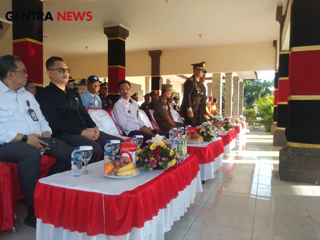 Upacara dipimpin oleh Inspektur Upacara, Waka Polres Buleleng Kompol Fudin Ismail, S.E., S.I.K., Μ.Α.Ρ., dengan Komandan Upacara Kasat Samapta Polres Buleleng AKP Wayan Sukrawan, S.AP dan Perwira Upacara Kasubbagkerma Bagops Polres Buleleng AKP I Ketut Suparta, S.H., M.H.