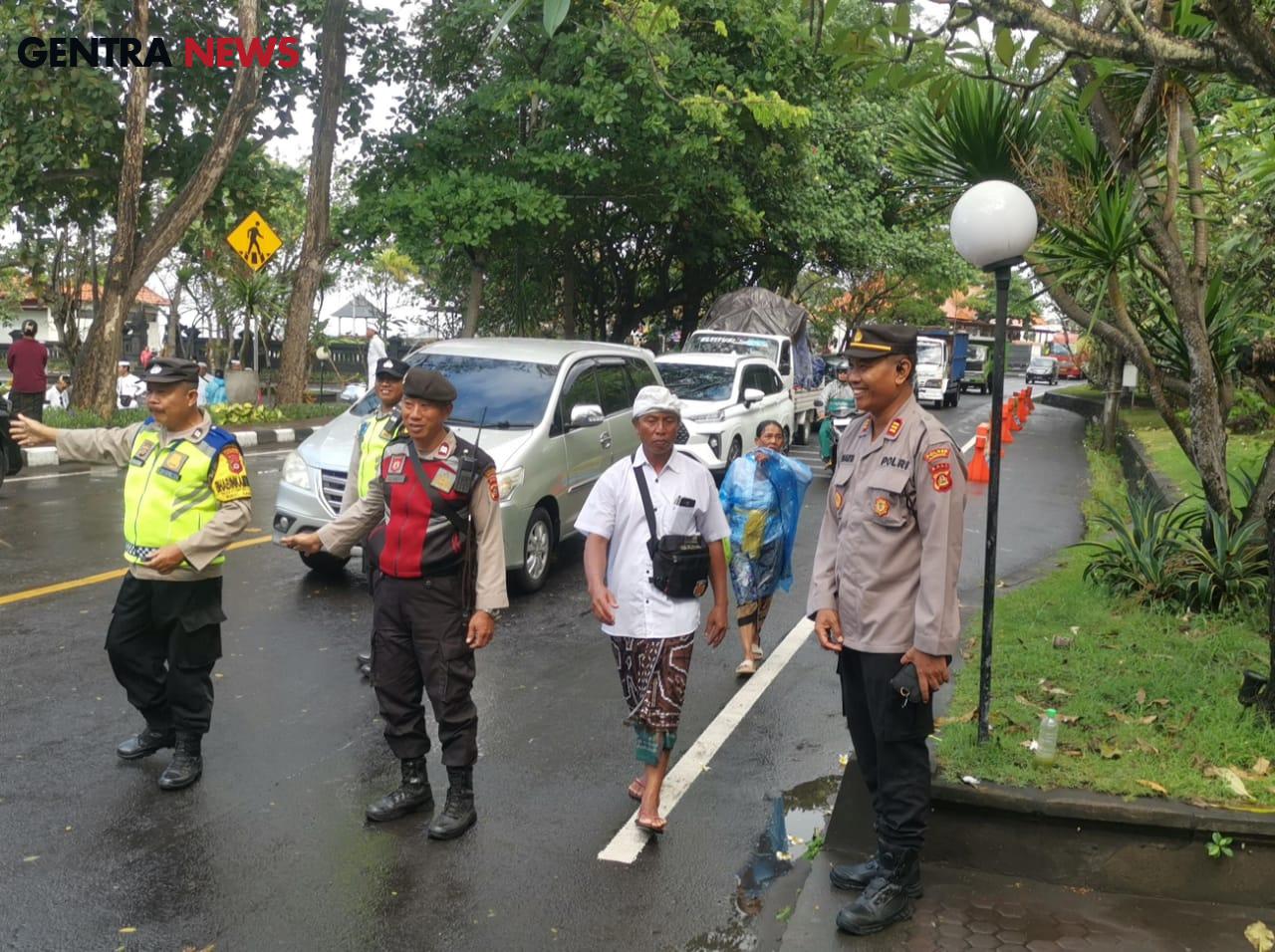 Pada kesempatan tersebut personel Polsek Dawan melaksanakan gatur lalin di penyebrangan depan Pura Goa Lawah dan memberikan himbauan kepada masyarakat untuk berperan aktif di dalam menjaga situasi serta keamanan lingkungan dengan cara berbagi informasi tentang Kamtibmas.