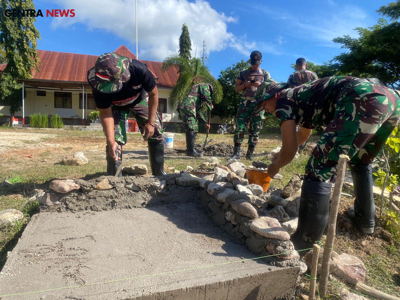 Gentra News NTT – Baen, Berikan kenangan di Desa, Pos Haumeniana Satgas Yonkav 6/Naga Karimata laksanakan pembangunan Tugu Merah Putih yang ada di Desa Sunkaen, Kec. Bikomi Nilulat, Kab. TTU, Prov. NTT. (2/7/24)