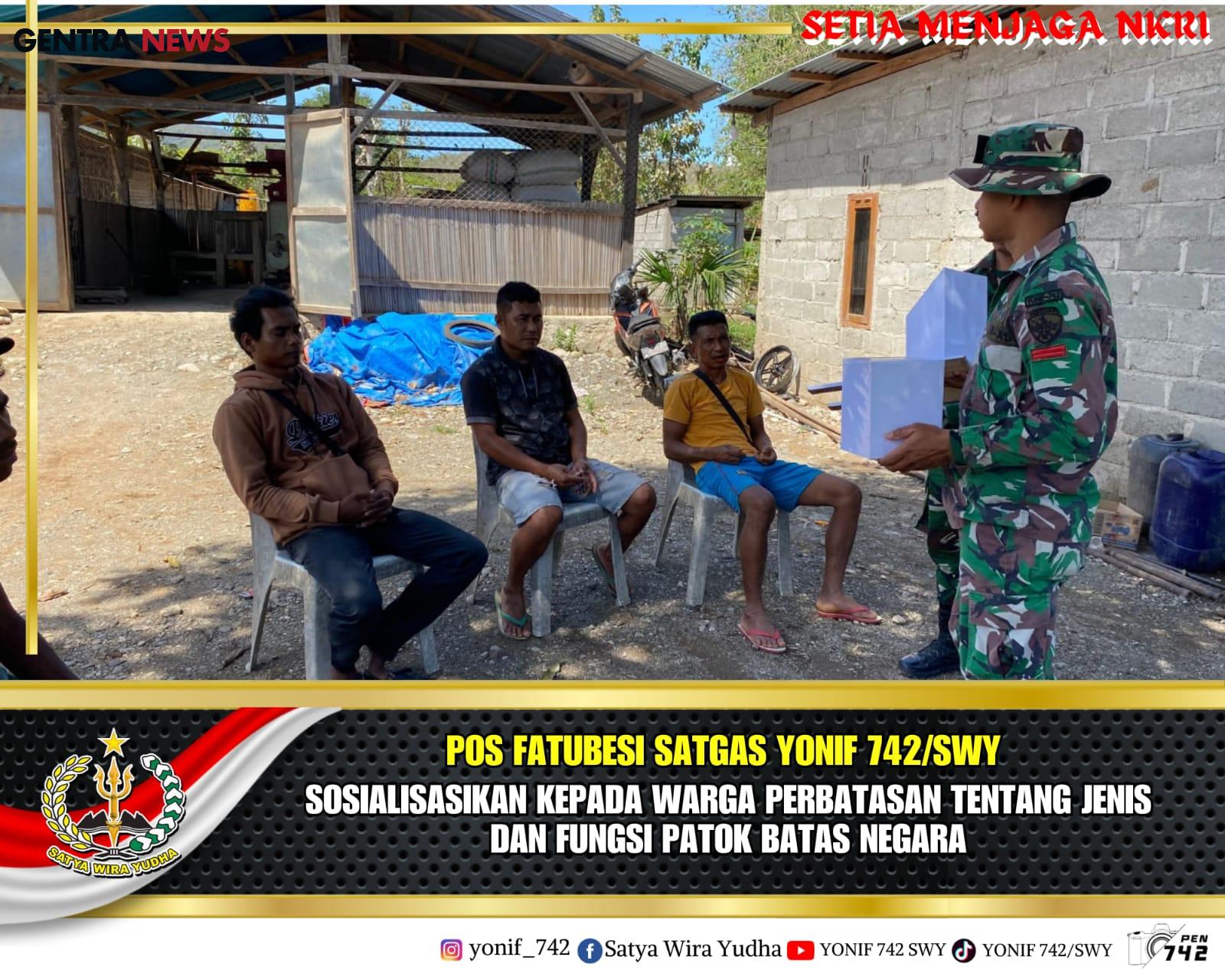 POS FATUBESI SATGAS YONIF 742/SWY SOSIALISASIKAN KEPADA WARGA PERBATASAN TENTANG JENIS DAN FUNGSI PATOK BATAS NEGARA