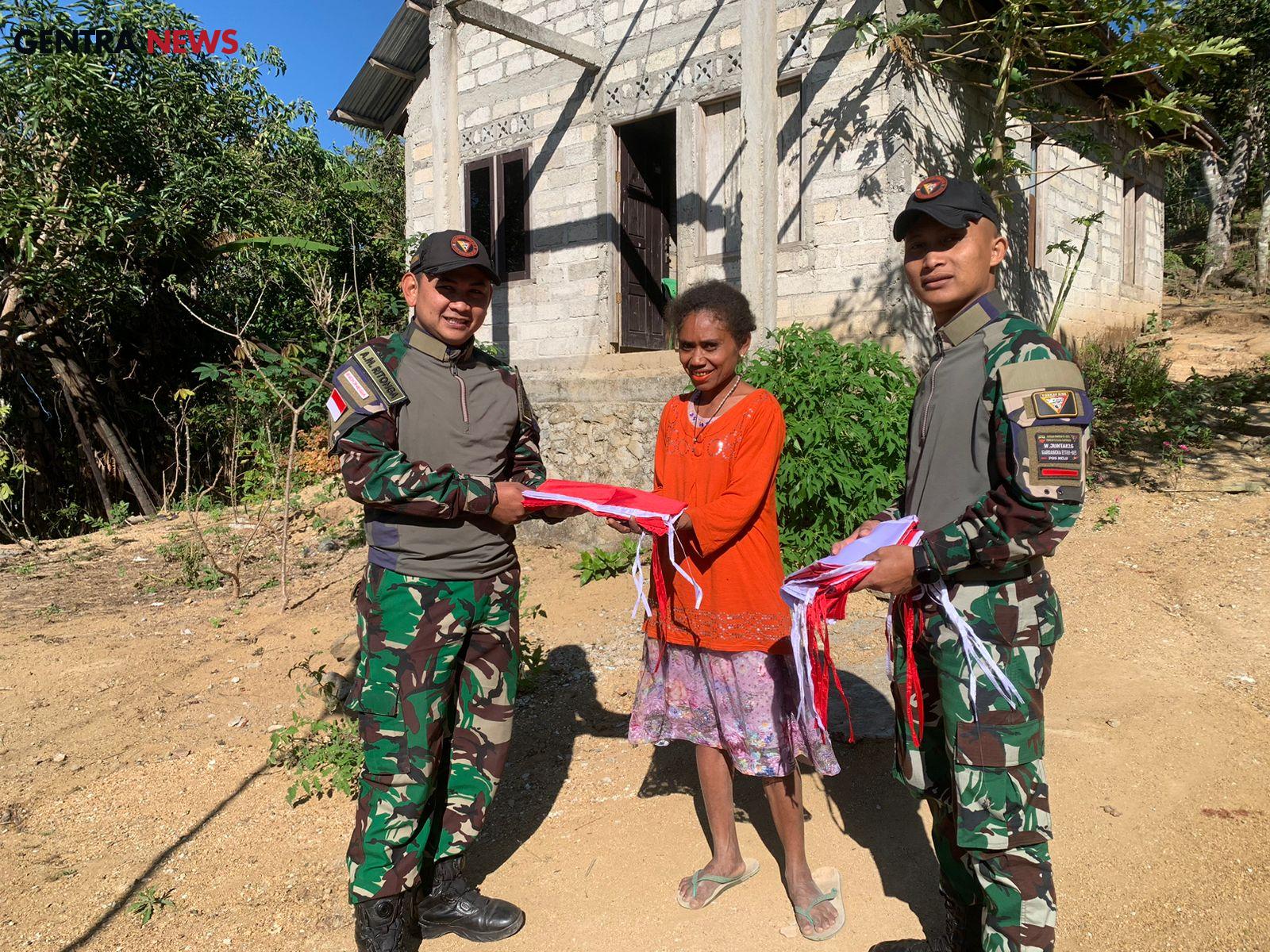 Gentra News NTT – Sunsea, Tebarkan semangat merah putih di perbatasan, Pos Nelu Satgas Yonkav 6/Naga Karimata berikan bendera merah putih kepada masyarakat yang ada di Desa Sunsea, Kec. Naibenu, Kab. TTU, Prov. NTT. (8/8/24)
