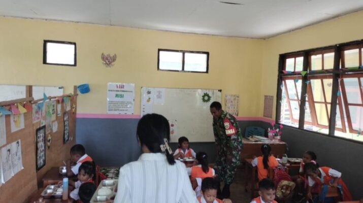 Pelaksanaan kegiatan diawali dengan pendampingan Babinsa yang memastikan proses distribusi berjalan tertib dan aman. Koptu Mesak Foeh hadir langsung untuk memantau jalannya kegiatan sekaligus membantu memastikan seluruh siswa menerima makanan sesuai data yang telah ditetapkan. Kehadirannya juga menjadi bagian dari tugas Babinsa dalam memberikan rasa aman kepada masyarakat khususnya anak-anak yang terlibat dalam program tersebut.