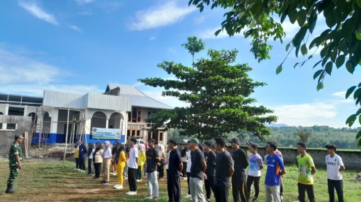Dompu, NTB – Danpos Woja Koramil 1614-01/Dompu, Peltu Muslimin, bersama Babinsa Kelurahan Monta Baru, Sertu Faruk, melaksanakan kegiatan pemberian materi latihan Peraturan Baris Berbaris (PBB) kepada karyawan MBG di Desa Rababaka, Senin (22/12/2025) pukul 10.07 WITA.