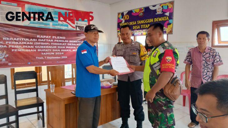 Babinsa Titab Serma Gede Juliana hadiri Rapat Pleno Rekapitulasi Daptar Pemilih Sementara Hasil Perbaikan ( DPSHP) Tingkat Desa /Kelurahan Pada Pemilihan Gubernur Dan Wakil Gubernur Pemilihan Bupati Dan Wakil Bupati Tahun 2024 yang dipimpin oleh Ketua KPPS Desa Titab ( Nyoman Arsana) di Aula Desa Titab Kecamatan Busungbiu Kab.Buleleng telah berlangsung kegiatan