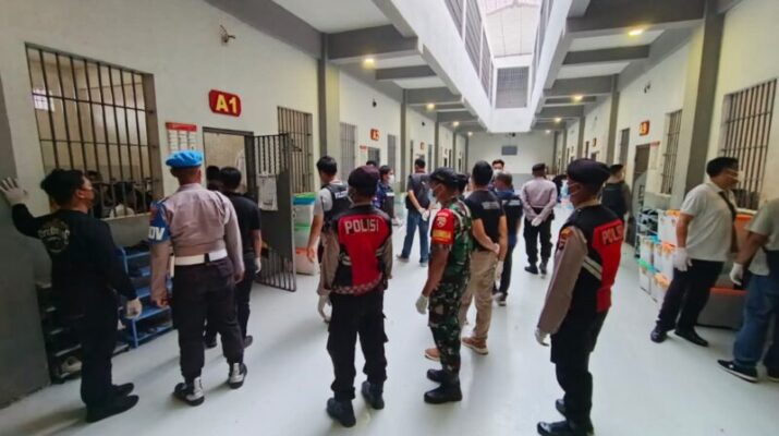 BALI – Badung, Dalam rangka pelaksanaan razia gabungan bersinergi dengan aparat penegak hukum TNI-Polri, Lapas Kelas IIA Kerobokan melakukan penggeledahan di dalam lapas. Kegiatan ini dipimpin oleh Kepala Bidang Pelayanan dan Pembinaan Kanwil Ditjen Pas Bali, I Wayan Putu Sutresna, dan diikuti oleh 75 orang personel gabungan. Bertempat di Lapas Klas IIA Kerobokan Jl. Gunung Tangkuban Perahu No. 88b Kelurahan Kerobokan Klod Kuta Utara Kabupaten Badung. Sabtu, (11/10/25).