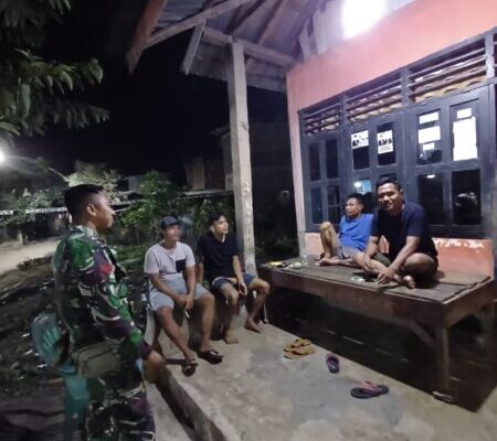 Dompu, NTB, gentra.co.id — Sabtu (1 November 2025) pukul 21.15 WITA, Babinsa Koramil 1614-01/Dompu Kodim 1614/Dompu, Koptu Abubakar, melaksanakan kegiatan ronda malam/kongkow-kongkow bersama LPM, karang taruna, dan warga binaan di Lingkungan Soriwono RT 13, Kelurahan Potu, Kecamatan Dompu. Kegiatan ini dilakukan sebagai bentuk kepedulian Babinsa dalam menjaga keamanan wilayah sekaligus mempererat hubungan dengan masyarakat binaannya.