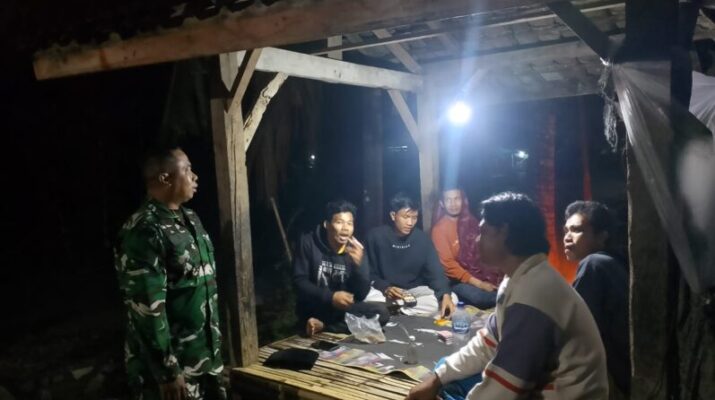 Dalam kesempatan itu, Sertu Sukrin berinteraksi langsung dengan warga yang sedang berkumpul di pos ronda. Ia memberikan arahan agar masyarakat terus menjaga kekompakan dan meningkatkan kewaspadaan terhadap situasi lingkungan sekitar, terutama pada malam hari ketika aktivitas warga mulai berkurang.