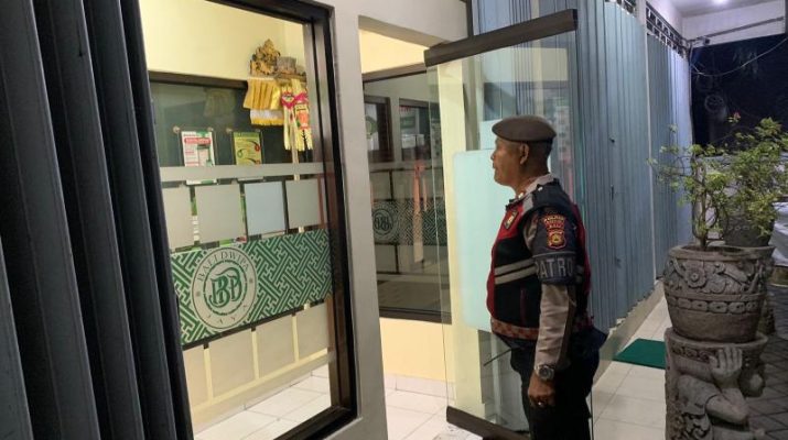 Gentra.co.id BaliĀ  – ABIANSEMAL – Dalam rangka menjaga situasi kamtibmas yang kondusif di wilayah hukum Polsek Abiansemal, anggota Samapta Polsek Abiansemal melaksanakan patroli rutin ke sejumlah lokasi strategis pada Minggu (05/01/2025) Pkl. 02.35 wita. Salah satu lokasi yang menjadi sasaran patroli adalah kantor dan ATM BPD Bali di wilayah Mambal.