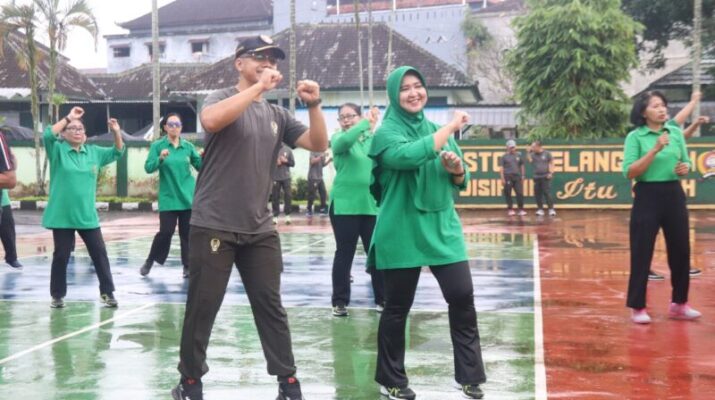 Klungkung,- Menjelang akhir masa jabatannya, Dandim 1610/Klungkung Letkol Letkol Inf Armen,S.Ag., M.Tr ( Han ) didampingi Ketua Persit KCK Cabang XXXIII Kodim 1610/Klungkung Ny Yoice Armen menggelar olahraga bersama, Jumat ( 04/07/25 ).