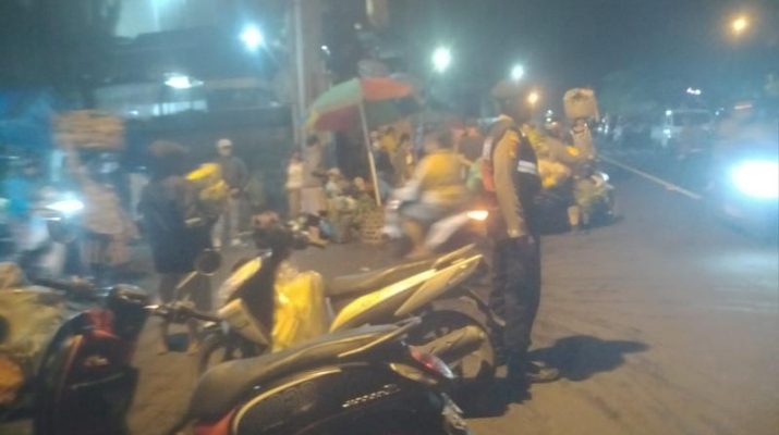 Samapta Polsek Abiansemal Atensi Kelancaran Arus Lalu Lintas Di Depan Pasar Blahkiuh