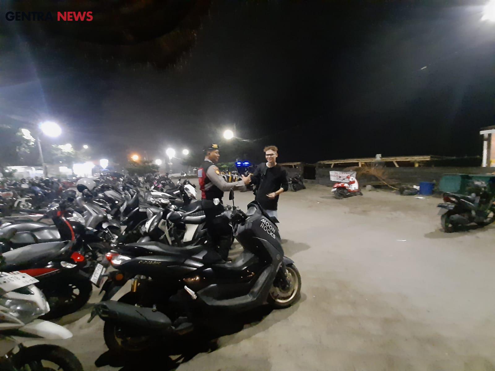 Dalam kegiatan Blue Light Patrol malam ini Aiptu Nyoman Surata bersama anggota tampak menyambangi parkiran pantai Batu Bolong melakukan pemantauan dan memberikan imbauan Kamtibmas kepada pengunjung tempat hiburan malam yang memarkir kendaraannya agar selalu berhati hati ketika meninggalkan kendaraan guna mengantisipasi tindak pidana pencurian helm dan sepeda motor.